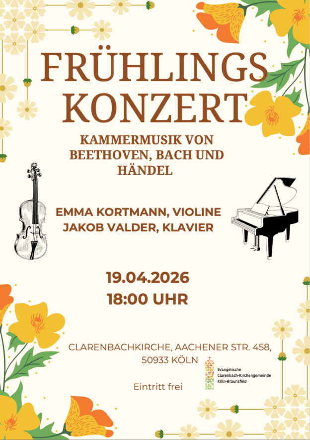 JV Frühlingskonzert am Sonntag, 19. April 2025, um 18.00 Uhr in der Clarenbachkirche Kammermusik Violine und Klavier