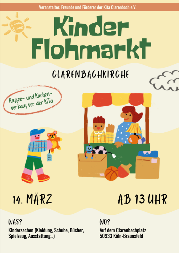 Kinderflohmarkt der Kita am Samstag, 14. März 2026, ab 13.00 Uhr an der Clarenbachkirche