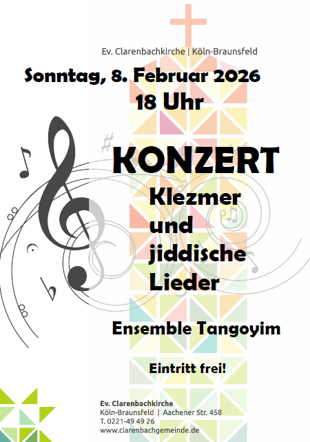HWB Konzert Klezmer und jiddische Lieder am Sonntag, 08. Februar 2026, um 18.00 Uhr in der Clarenbachkirche Mit dem Ensemble Tangoyim