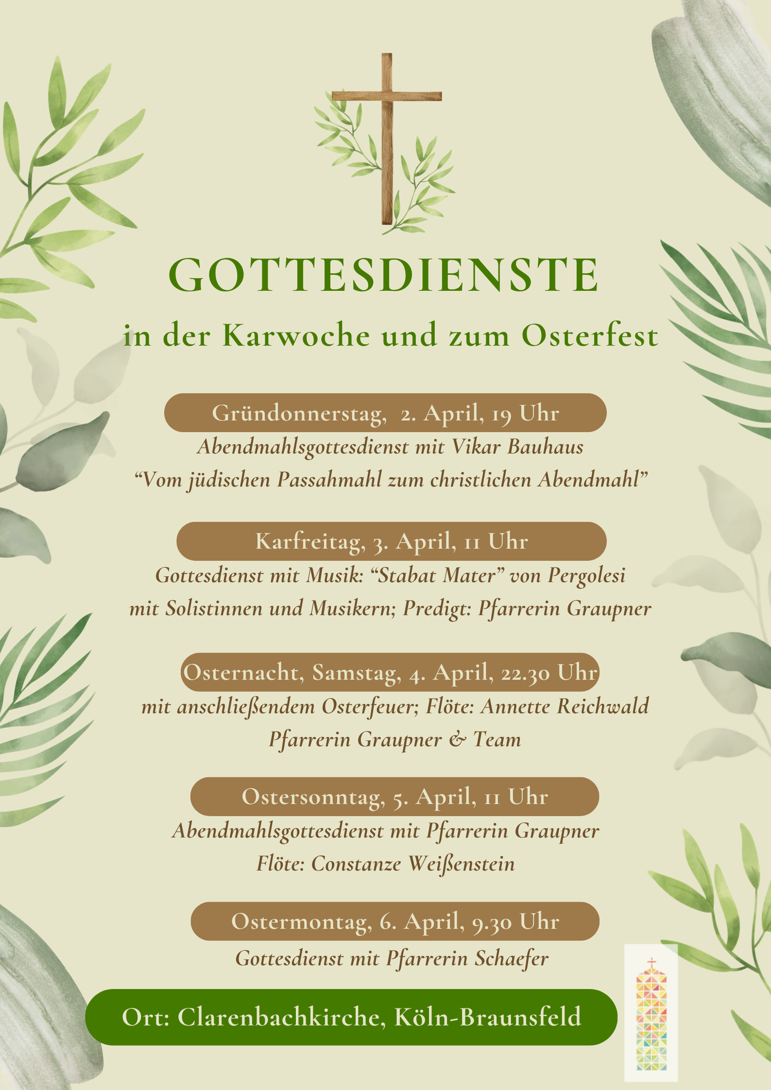 11:00 - 12:00 | Ort: ClarenbachkircheGottesdienst am Ostersonntag mit Abendmahl