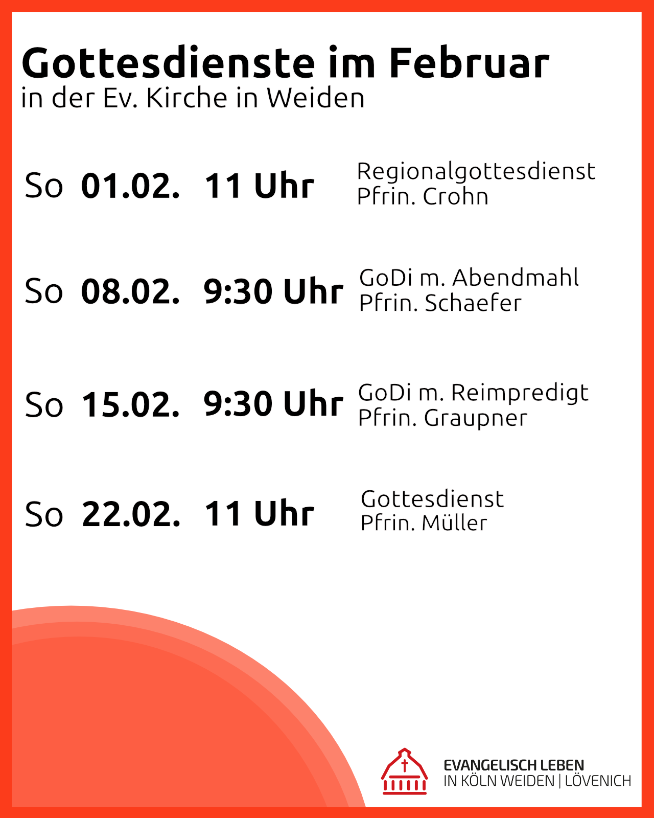 Heutige Veranstaltungen der Ev. Clarenbach-Kirchengemeinde Braunsfeld-