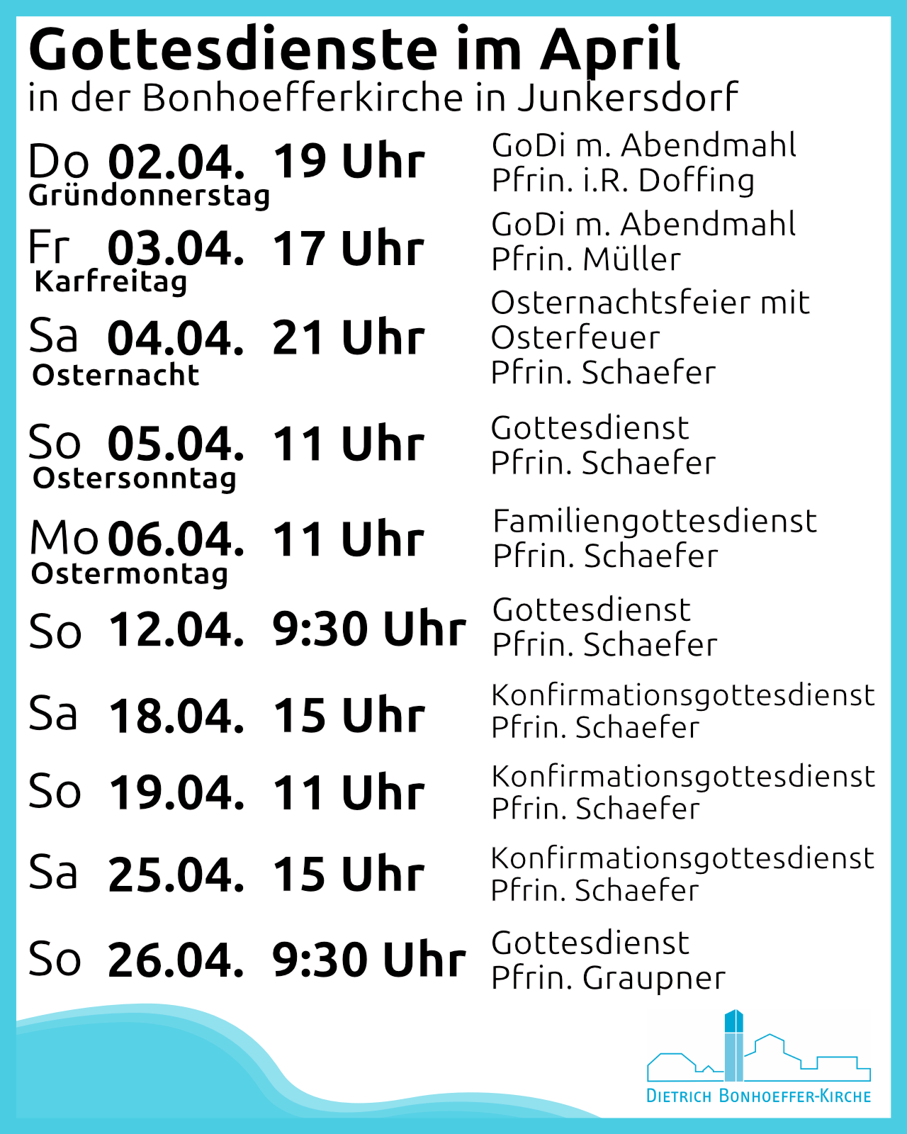 9:30 - 10:30 | Ort: ClarenbachkircheGottesdienst am Ostermontag